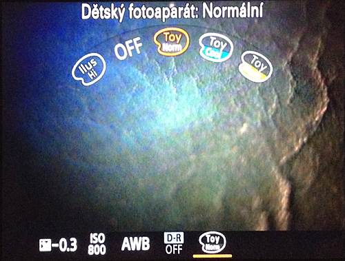 Zajímavý je filtr TOY. Zdaleka to není specialita Sonyho, najdeme ho v nabídce filtrů mnoha dalších výrobců. Je to vždycky silná vinětace (toy, anglicky „hračka“, myslí se tím optika nějakého laciného aparátku pro děti). Sony přidává saturaci a výsledek může příjemně překvapit.