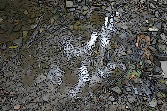 Režim filtru Ilustrace také vytváří zajímavé kreace – může to sloužit jako grafický prvek. Toto je pohled na hodně mělký potůček a na kameny, poznali byste to?