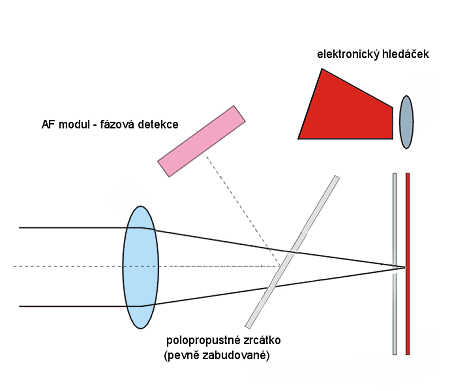 Tak tohle by skutečně mohla být revoluce. Je to čtrnáct dní, kdy jsem zde vyslovil názor, že “řešení bude v implementaci skutečných AF systémů na bázi fázové detekci”, a je to tady – Sony přichází právě s tímto principem, kdy se fázová detekce uplatňuje prostřednictvím polopropustného zrcátka i v live view režimu. Tak tohle je bomba: vedle “zrcadlovek bez zrcátka” máme “ne-zrcadlovku se zrcátkem”! Takže abychom se v tom vyznali: