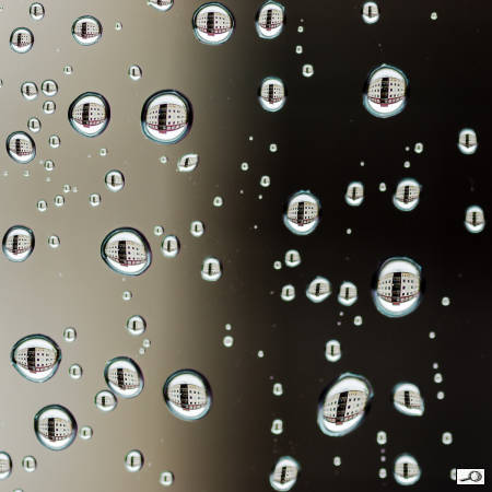 Na zapršené okno se zaměřil i Pavel Koumar, je to snímek bezesporu efektní, každá kapka se stává jakýmsi objektivem a dohromady je to složené oko zírající na totéž. Výborně udělaná a vtipná fotografie.