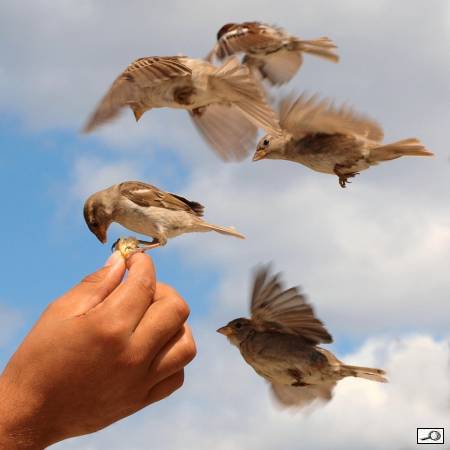 Prostě výborná po všech stránkách je fotka Jana Kurela Ruka pomocná. Dokonalá až neuvěřitelně, bez jediné chybičky kompoziční, expoziční, zaostřovací, fotka čitelná, roztomilá, sdělná. Navíc je skutečně napasovaná do čtvercového formátu, ti prožluklí opeřenci jako by o tom věděli a letěli přesně tak, aby ani brčkem nevypadli z rámce.