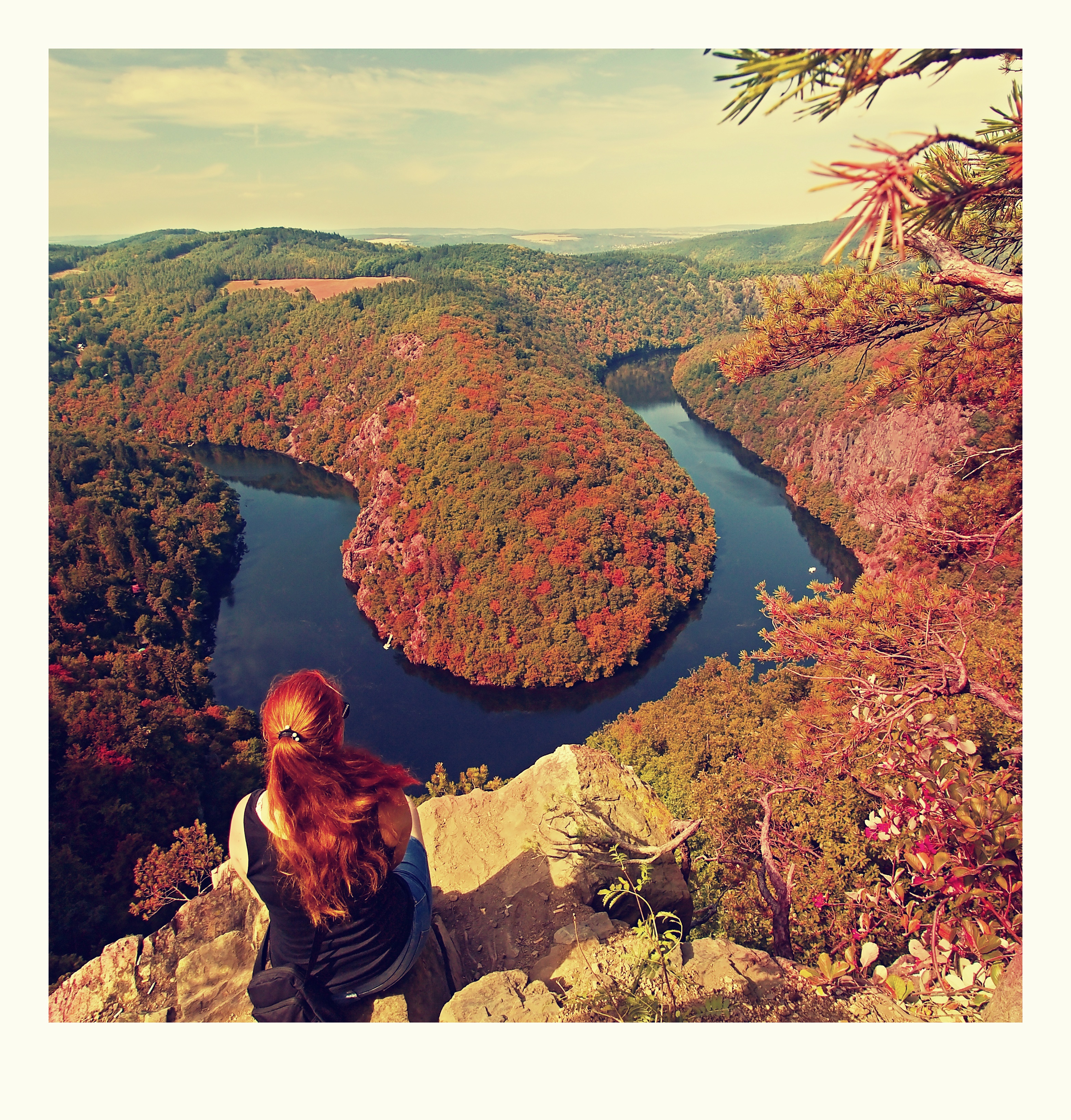 Podzimní Máj v podání Ilony Slavíčkové je na mé gusto opravdu hodně nabarvený. Doufám, že ze z 84 místa přece jen pohne výš. Oceňuji, že se přemýšlelo, že se k červeným listům přizvala rusovláska a posadila se na správné místo, aby její rusé vlasy byly dobře vidět a aby opravdu každého trklo, že listí tam dole je stejně červené. Každopádně je ten Máj na Vltavě (je to mezi Slapskou a Štěchovickou přehradou, jde se tam z Teletína lesem asi kilometr) krásné místo a už iks let si slibuju, že se tam vypravím… až budou červené listy. Ilona Slavíčková mě k tomu možná vyprovokuje.
