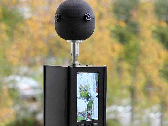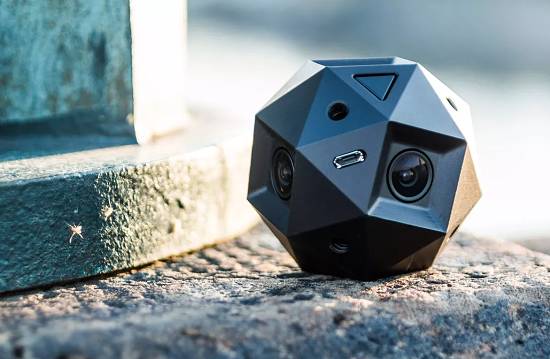 Teď by měla přijít dvojka a na ni byla ona subskripce na Kickstarteru. Jde o přístroj s průměrem 65 mm, uvnitř je 6 kamer, které souběžně snímají svět kolem sebe v rozlišení 4K. Je to zcela automatické zařízení, nic se nenastavuje. Obrazová informace se simultánně zaznamenává – data tečou rychlostí 1 GB/sec. Vypadá takto: