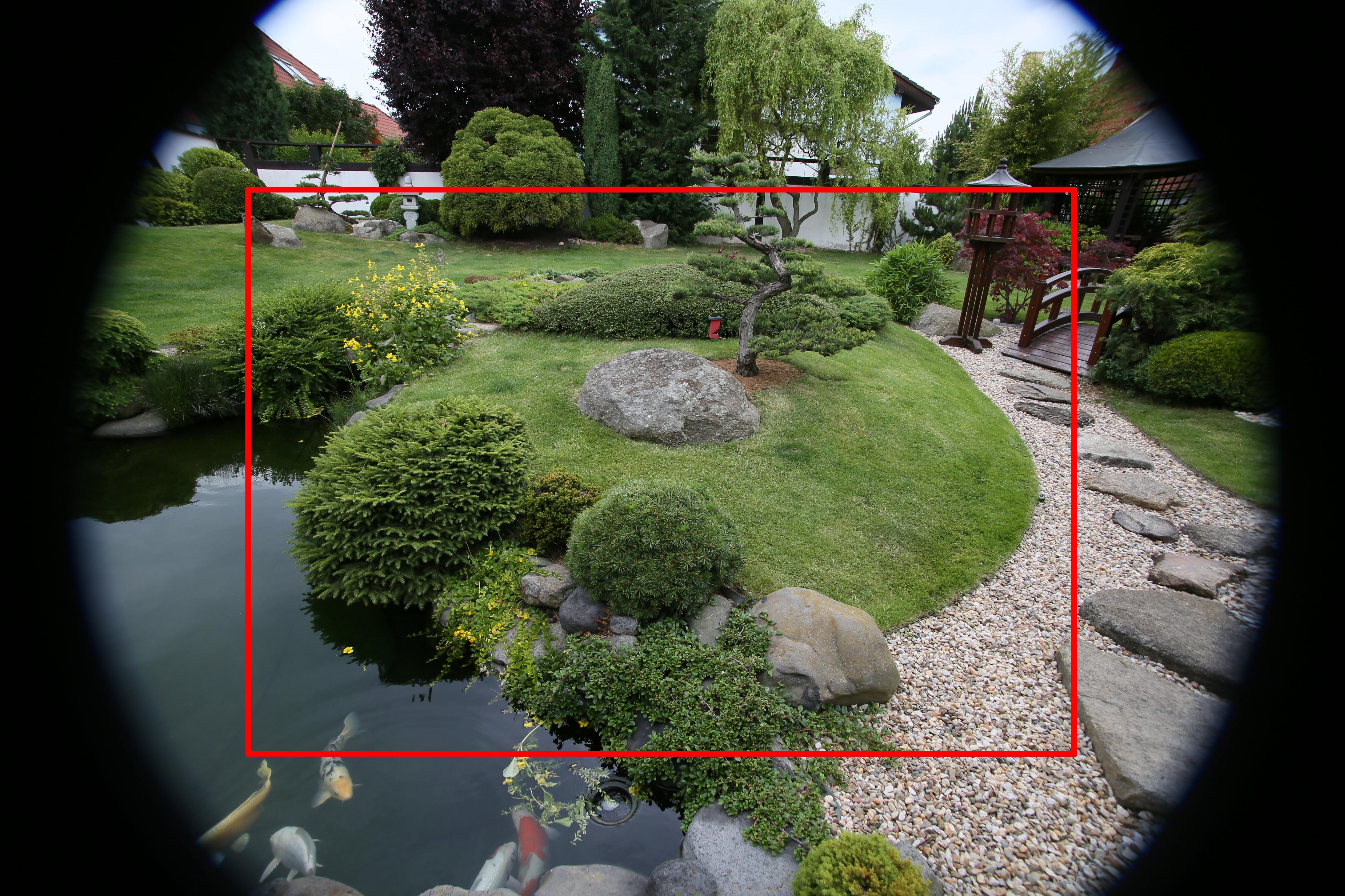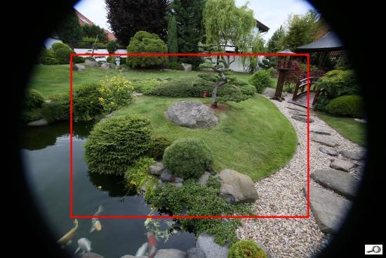 Vyznačil jsem zhruba rozdíl. Červený obdélník vymezuje to, co se promítne na APS-C. Co je mimo je už méně ostré, objektiv není pro tato místa optimalizován. Nicméně záběr je širší.