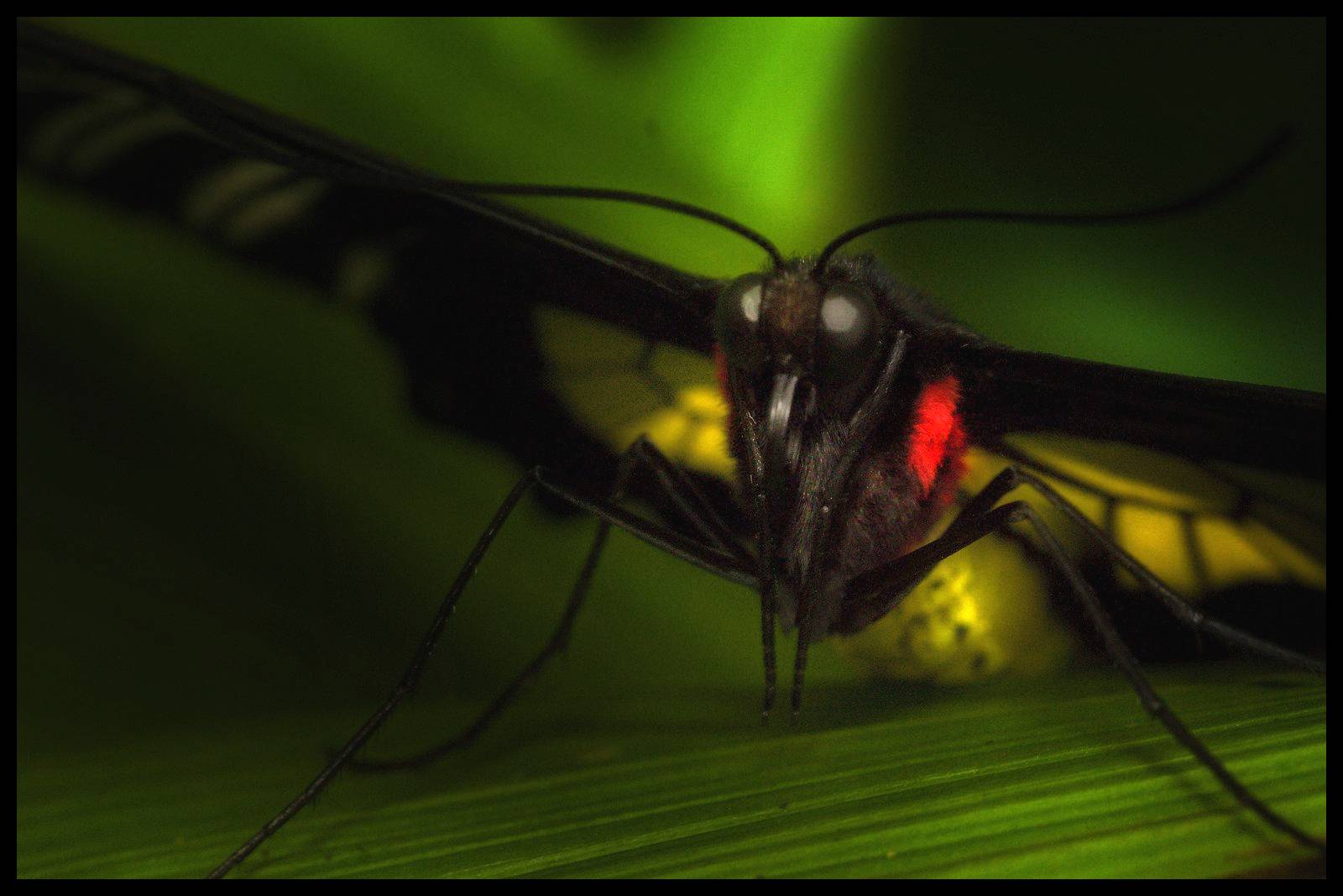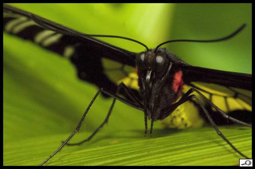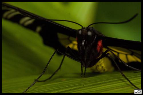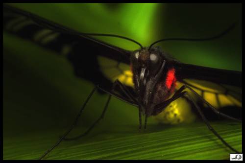 Fantazii se meze nekladou. Jde nám o to, aby se do fotky dostala plastičnost, aby stíny byly tmavé a osvětlené partie aby zářily. Mám rád trochu tmavou, “low key” atmosféru. Ta se dá touto metodou krásně vyvolat. Malým, poměrně tvrdým štětcem pracujeme v detailech, velkým upravujeme plochy. Zastávám zásadu, že to hlavní, zde tedy hlava motýla a jeho oči, by mělo být jasné a dobře čitelné a podružnější partie je možno utopit do stínu. Úplně nakonec lze vrstvy sloučit a obrázek dodělat – třeba ve výběru mu doladit jasy a stíny, aby nakonec vypadal takto: