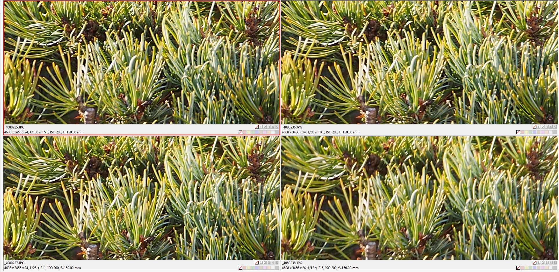 Kreslí bez problému až do clony F11, při F16 zeslábne a F22 je už jen přibližná ostrost. Totéž platí i pro delší ohnisko, tedy pro 150 mm:
