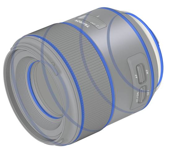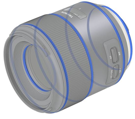 I zde design objektivu rovněž hodně připomíná řešení Zeiss. Je zde okénko u ukazatelem zaostření vzdálenosti a dva přepínače, z automatiky na ruční ostření a zapínání / vypínání stabilizace. Sympatii budí řešení bajonetu pro sluneční clonu. Na schematu vidíme těsnicí kroužky.