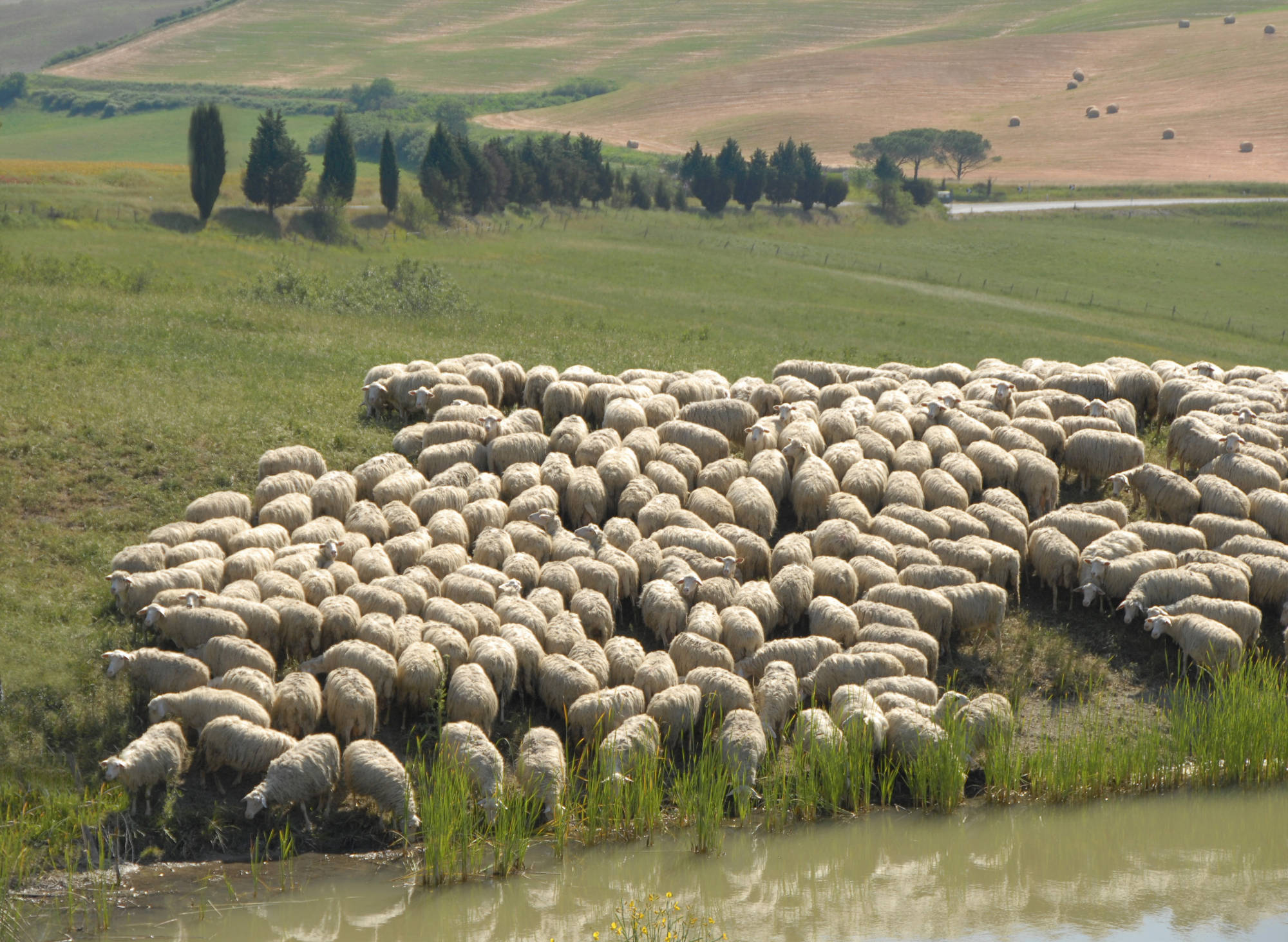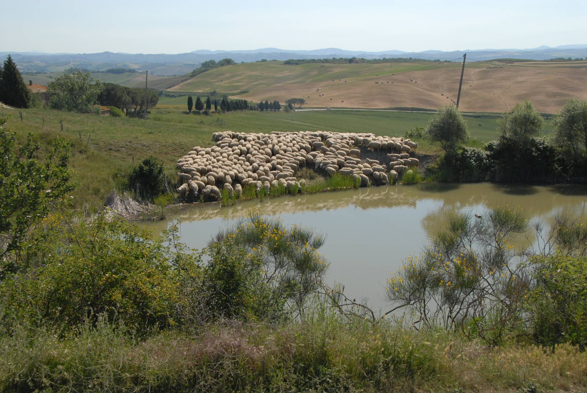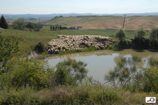 Takto vznikl pátý obrázek ze série. Je tam v podstatě vše, co mě na motivu zaujalo. Ovečky přicházející k rybníku, aby se napily. Rybník tu je čitelný, nicméně nezabírá moc velkou plochu. Největší plochu jsem vyhradil ovečkám, to je jádro motivu. Jenže ta krajina k nim taky patří. I ta patří k motivu. Je třeba jít po stopách zaujetí. Co mě praštilo do očí? Jenom ovečky? Rozhodně ne, byly to ovečky PLUS toskánská krajina.