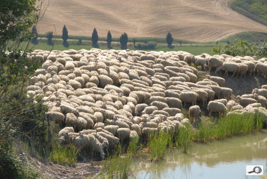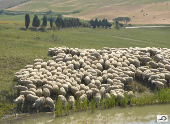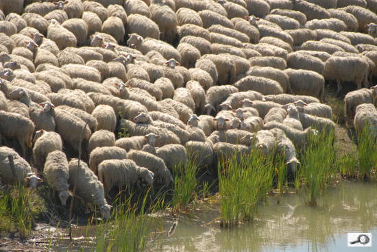 Takže se přiblížím zoomem ještě víc, jsem na ohnisku ekv. 300 mm. Vlk zahnán, jenže to ztratilo prostor. Je to jen skrumáž ovcí, ztratila se krajina. Takové stádo můžete najít a vyfotit kdekoli.
