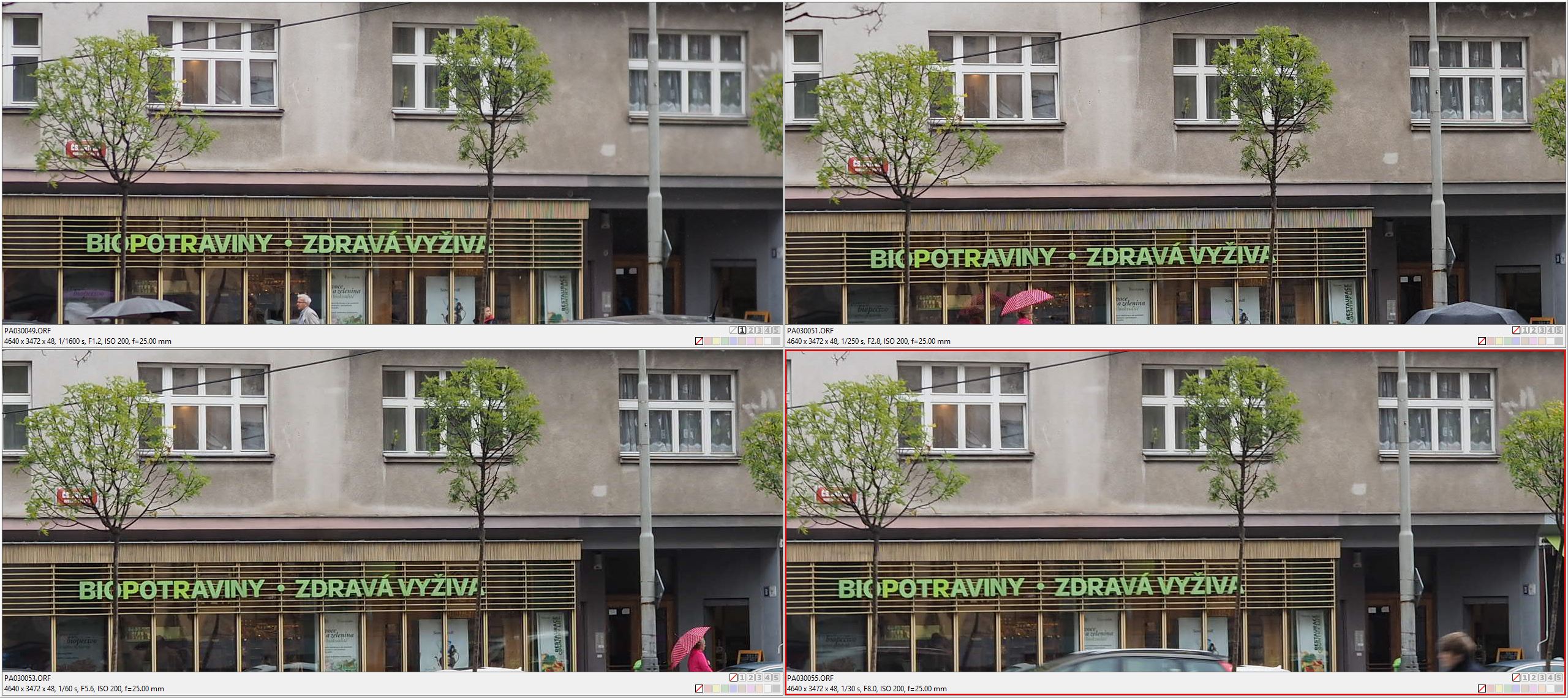 Fotil jsem přístrojem E-M5 Mark II. Na ukázce je motiv pořízený v řadě F1.2 – 2.8 – 5.6 – 8.0, zvětšení 100%, kresba je zcela vyrovnaná.
