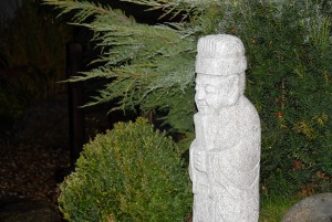 Slow flash neboli blesk do pomalého času je to, k čemu vás chci dovést. To je režim blesku, který respektuje expozici změřenou přístrojem a zábleskem scénu jenom přisvítí. Jak to funguje si ukážeme na následujících obrázcích. Na levém obrázku je scéna zachycená s režimem automatického blesku. Popředí je přezářené, střední partie je mnohem tmavší a pozadí je utopené ve tmě – snímek byl pořízen za šera, za zbytkového denního světla. Na obrázku vpravo bylo použito blesku v režimu “slow”. Expozice “držela” hodnoty příslušné danému osvětlení a blesk jen trochu přisvítil sochu, která je teď dobře prokreslená. Na snímku ani není vidět, že bylo blesku použito.