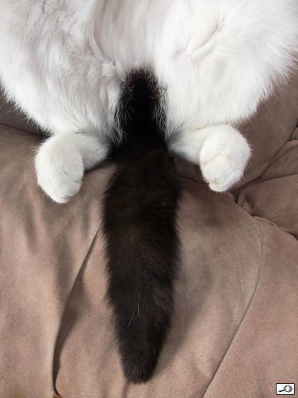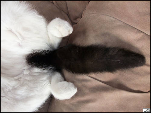 Kočku má doma kde kdo a jistě je hodně bílých koček s černým ocáskem. No a toto je příklad, kdy osová symetrická kompozice má své stoprocentní opodstatnění. Záměr je jasný, nesporný a efektivní. Lze si zaexperimentovat – kolega Sklenčka promine – a fotku obrátit o 90 stupňů: