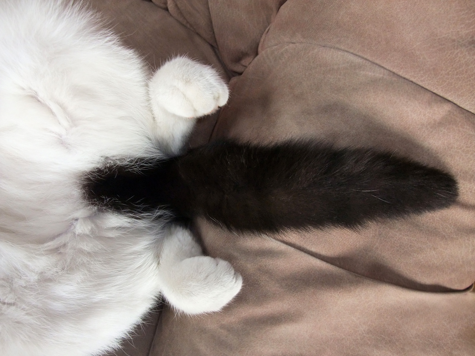 Kočku má doma kde kdo a jistě je hodně bílých koček s černým ocáskem. No a toto je příklad, kdy osová symetrická kompozice má své stoprocentní opodstatnění. Záměr je jasný, nesporný a efektivní. Lze si zaexperimentovat – kolega Sklenčka promine – a fotku obrátit o 90 stupňů: