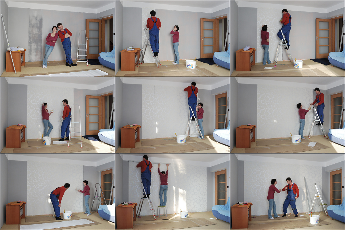 Efektní je i závěrečná fotka dnešní série. Martin Tulka ho nazval Pat a Mat aneb Domácí tapetování. A zase – nápad, příběh, příprava a realizace dokonalá po všech stránkách.