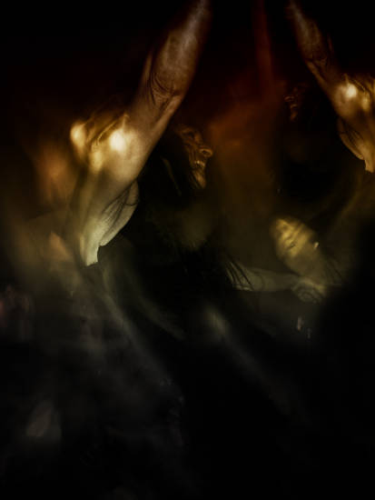 Silně zprocesovaný je i obraz, který vytvořila Markéta Butalová a nazvala ho Rej. Je to v podstatě vír světelných skvrn, které vytvářejí kompoziční prvky. Podstatné jsou dva obličeje posazené na úhlopříčce, z jednoho vidíme hlavně zuby, druhý je pohybově neostrý. Obraz je velmi dynamický, je to prostě Rej.