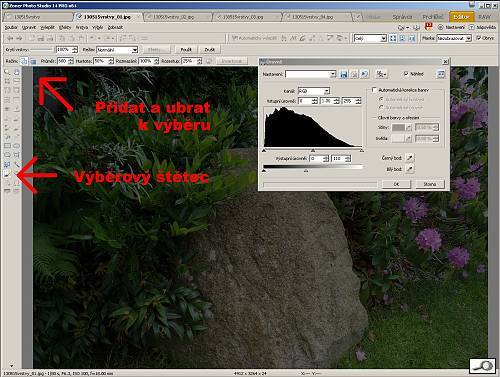 Když se spletu, udělám chybu, štětcem v režimu Přidat k výběru mohu obrázek na světlém místě zase ztmavit.