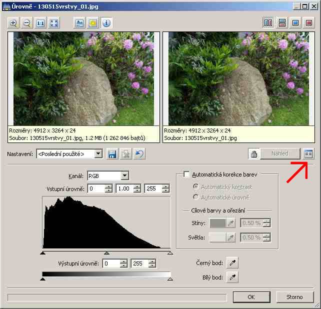 Světlá vrstva, to je původní obrázek. Vytvořím si tmavou variantu. Budu to dělat vcelku primitivně, v úrovních, tuhle funkci jistě znáte a používáte.