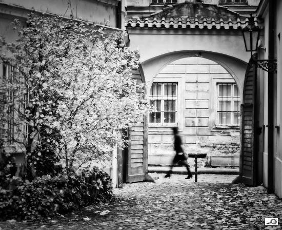 Jaromír Kačer na snímku Vrata zachytil pěknou podzimní atmosféru starého města. Pohybová neostrost spěchající figury dobře vystihuje sychravost dne. Autor se objevil v soutěži letos v říjnu, svými snímky zaujal. Jsou perfektně komponované s vytříbeným smyslem pro řešení plochy, zařazení detailů i práci s barvou. Oceněná fotka je černobílá, výtečně světelně řešená.