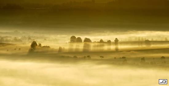Jiná cesta vede přes „zvláštní atmosférické podmínky“. Dobrou ukázkou je práce Standy Reischla Pod závojem. Krajina ponořená do ranní mlhy. Obrázek připomíná čínské tušové malby na rýžovém papíru. Kompozice se odvíjí od výrazné střechy domu a sleduje horizontálu, posazenou nebezpečně blízko horizontální osy. V oprávněných případech se takové zahrávání nejen odpouští, ale vyplácí.