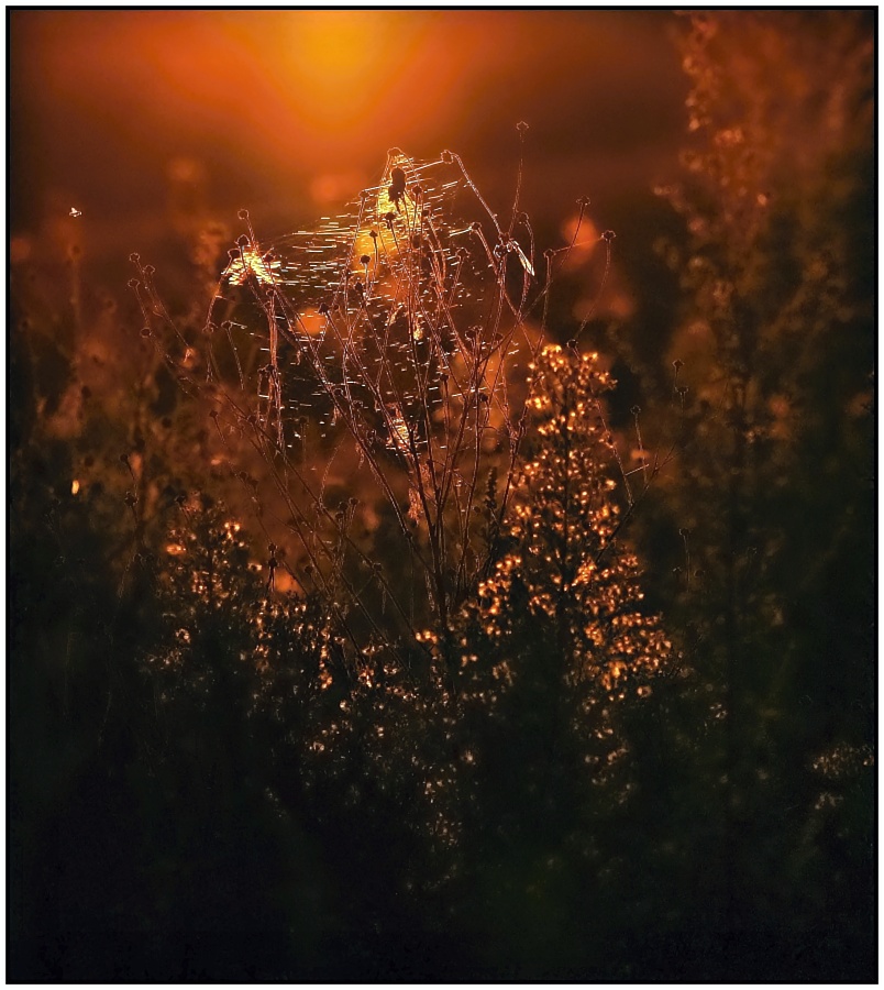 Taková světelná situace nastává zřídka a ne všude… Nicméně je možné si počkat na zajímavou světelnou situaci prakticky kdekoli. Na snímku V zajetí pavučin zachytila Alena Chmielová naprosto běžnou situaci, na kterou narazíme doslova na každém druhém kroku při podzimní procházce přírodou. Tohle není žádná atraktivní krajina, to je prostě křoví… Veškeré kouzlo je vyčarované světlem a jeho dokonalým zvládnutím. Kompozičně je obraz stavěn shora dolů po mírné diagonále. Oranžové světlo při horním okraji kompozici zahajuje a kompozičním středem jsou rozzářené pavučiny vlevo od svislé osy. Kompozici dotvrzuje shluk odlesků ve spodní části obrazu vpravo od svislé osy. Celá ta světelná hra je rámována jakýmsi tmavým límcem. Výborná ukázka toho, že za atraktivním obrázkem nemusíme jezdit na Island nebo na Nový Zéland…
