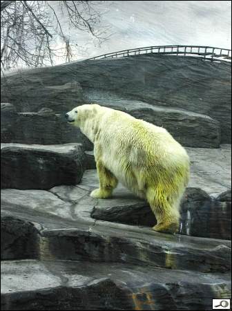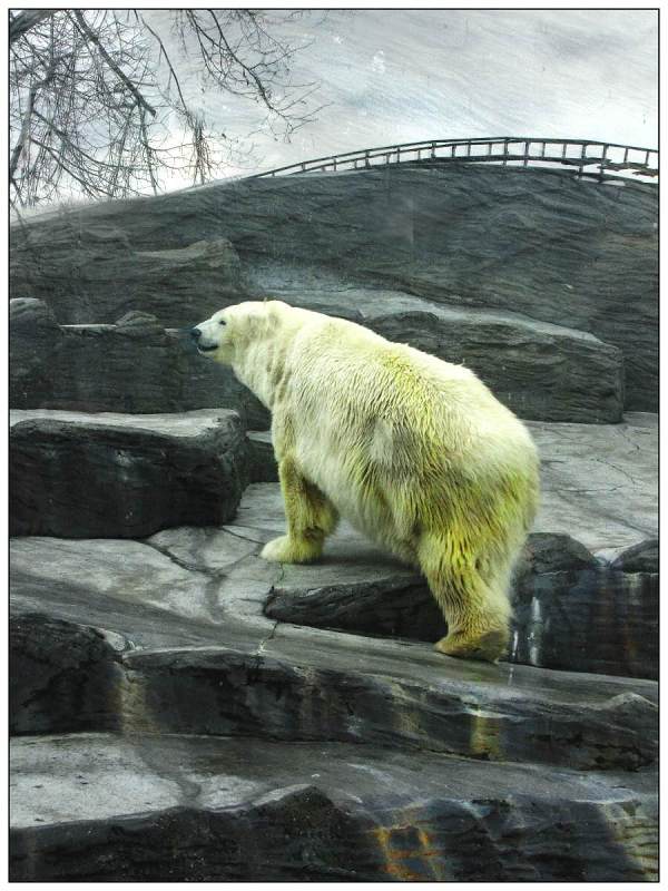 A do čtvrtice všeho skleněného: lední medvědi jsou za sklem… Kolikrát jsem si dělal stín, abych ulovil méďu “jakoby ve volné přírodě”! Až teď jsem si všiml zajímavého odrazu ve skle. Vypadá to trochu jako montáž, ale montáž to není – jenom divná realita.