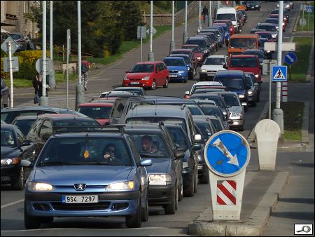 Vypadá to, jako kdyby ta auta byla natlačená jedno na druhé. To je jedna z důležitých vlastností dlouhého ohniska! Snímek jsem pořídil ekvivalentem skoro 400 mm. To už je velice dlouhé ohnisko, úhel záběru je velmi malý a efekt “komprimace” je značný.