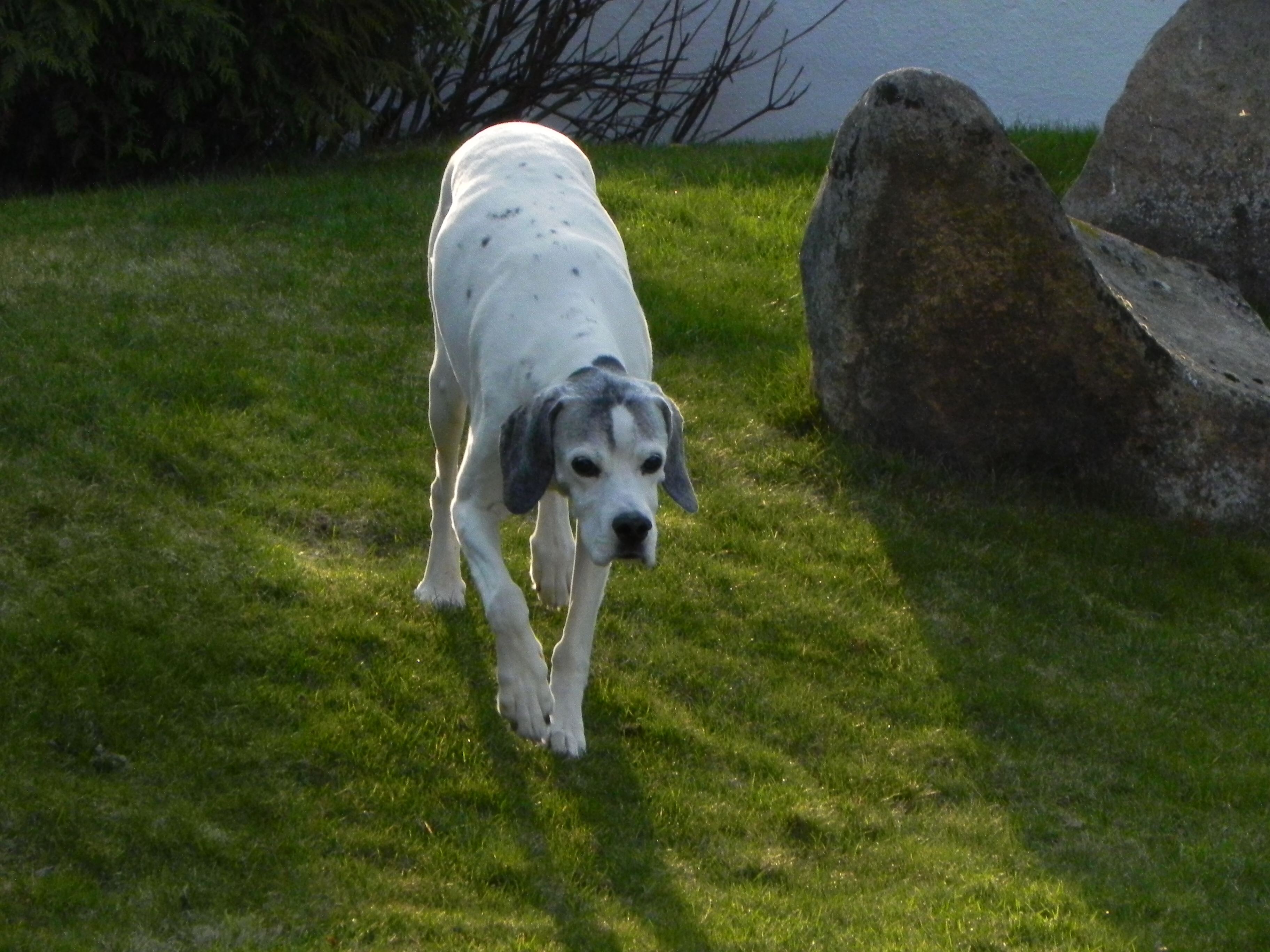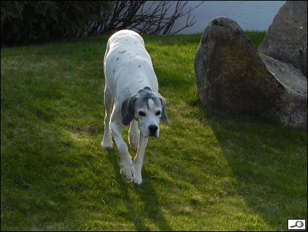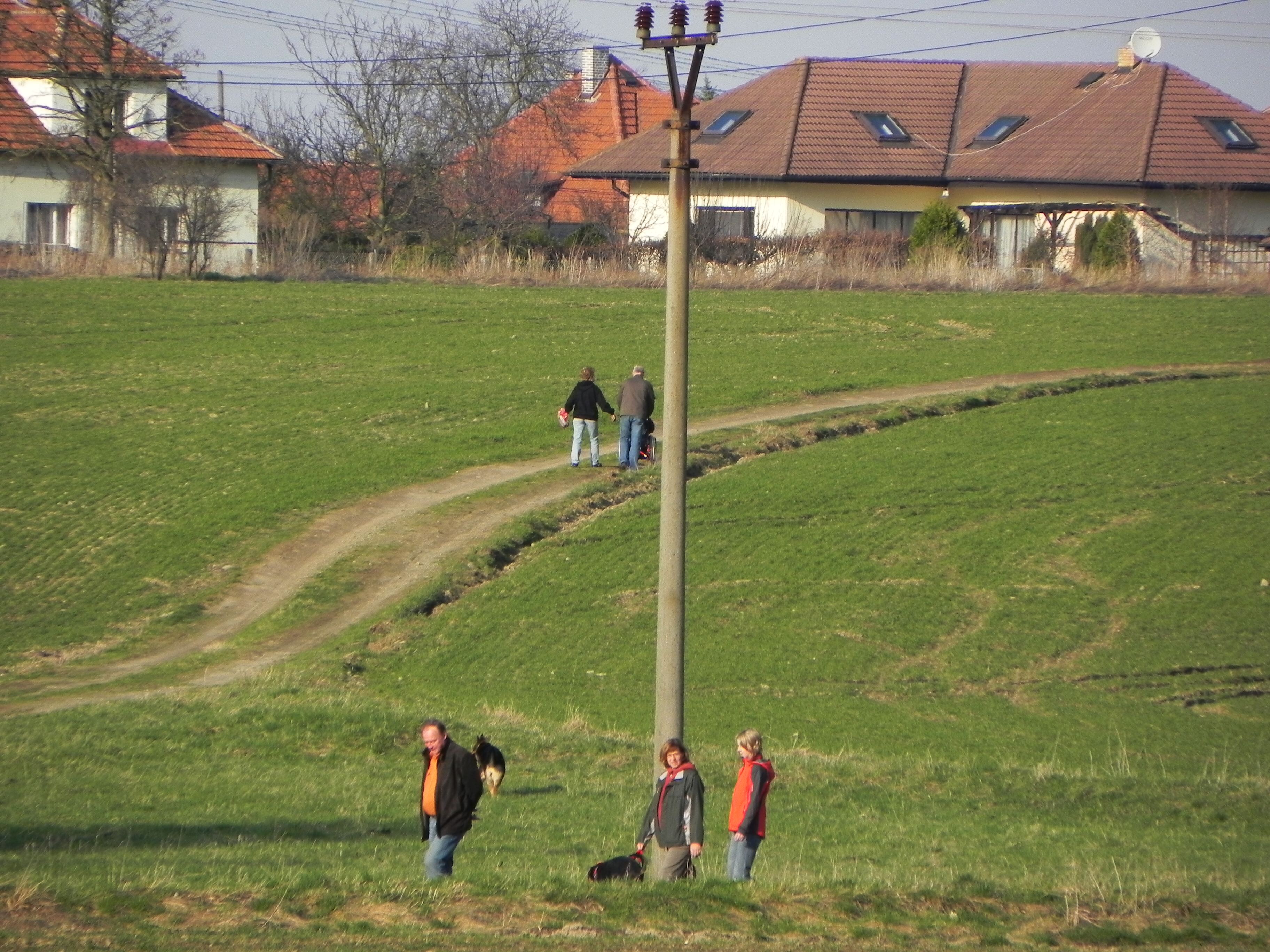 Na této ukázce je taky efekt komprimace – tělo zvířete je smrštěno a třeba že je naše Iris štíhlá elegantní fenečka, zde vypadá jako vařbuchta. I to je důsledek dlouhého ohniska, v daném případě ekvivalentu 300 mm. Smršťovat se pak dá cokoli – i krajina. Neřekli byste, že od lidí vpředu je k vesnici dobrých půl kilometru cesty! Tohoto triku se proto velmi často používá k efektním krajinářským záběrům. Čili: dlouhé ohnisko jenom nepřibližuje, ono zvláštním způsobem vykresluje prostor a to je jeho důležitá vlastnost.