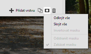 Tady je vidět, jak to funguje. Důležité je, abychom byli v režimu Maska – pozná se do podle toho, že ikonka Masky je orámovaná:
