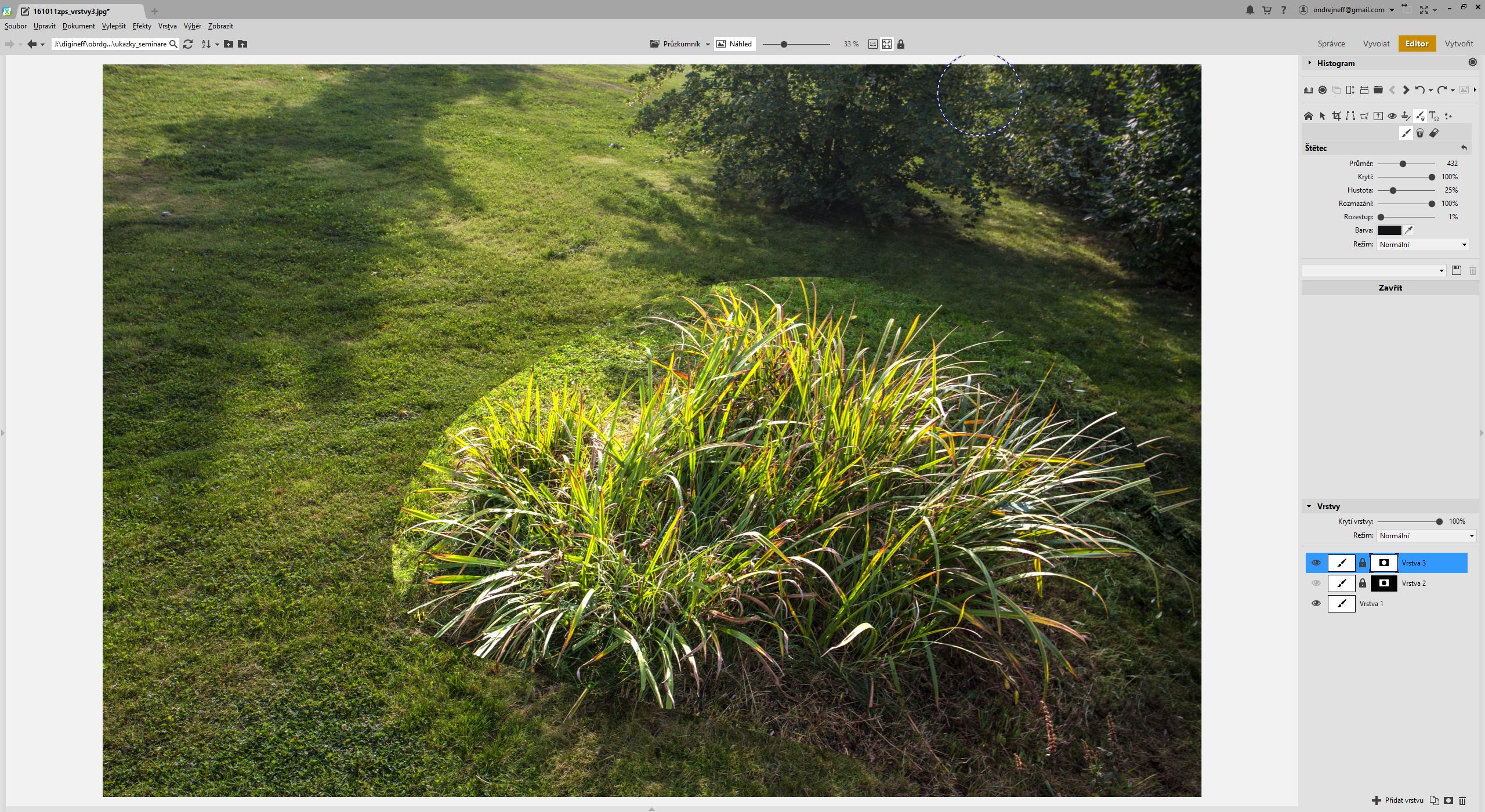 Vraťme se k obrázku – vidíte, jak jsem štětcem projasnil trs.