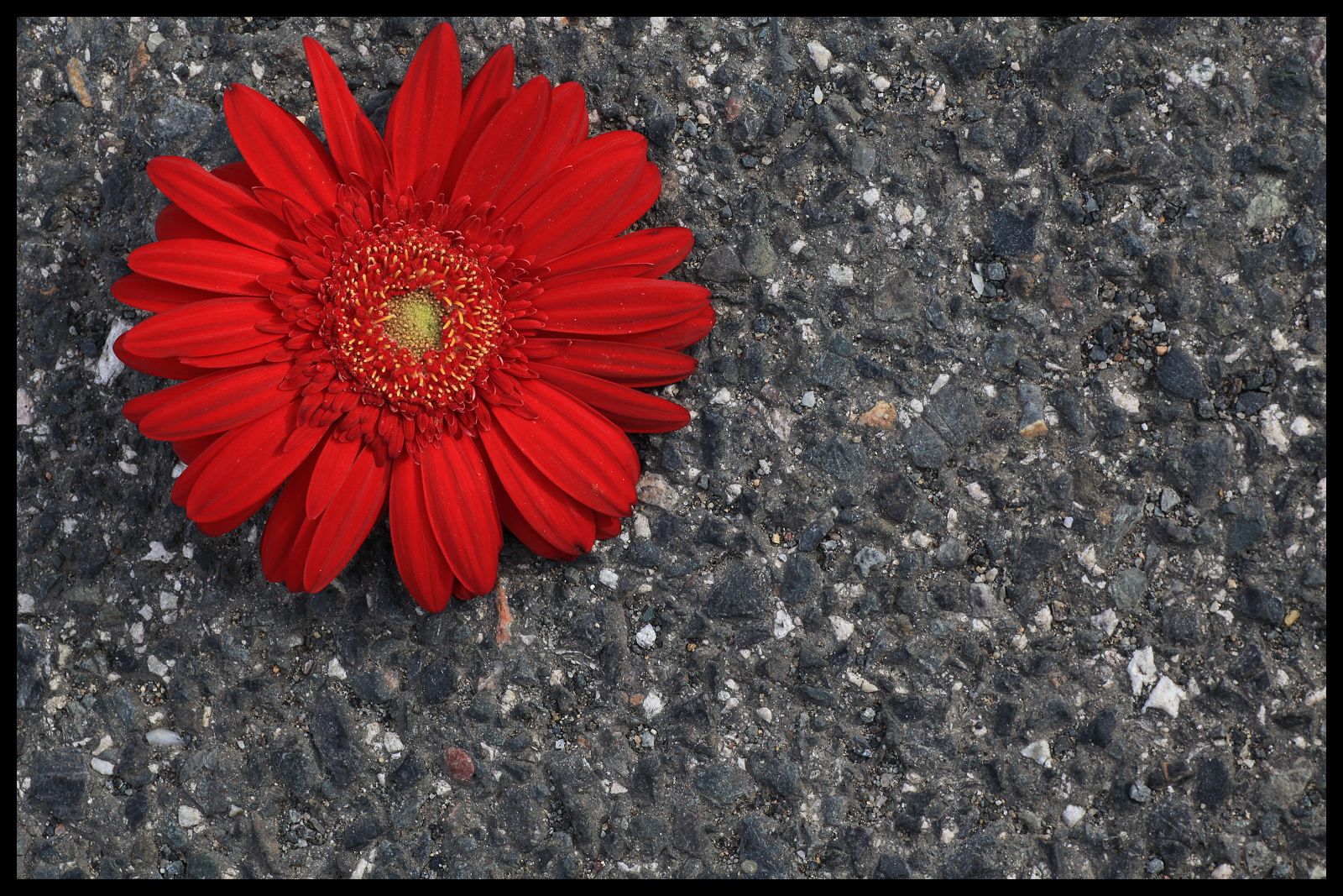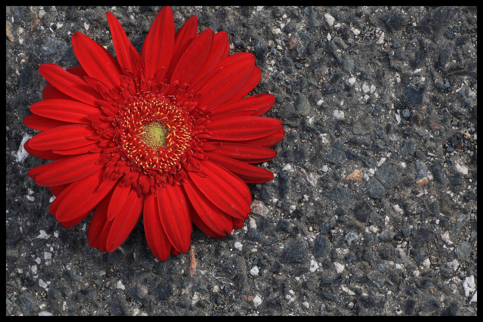 Dejme tomu, že naše Nora je výrazný tvar. Vyfoťme ji na pusté ploše. Toto je příklad takzvané středové kompozice, tvar leží na průsečíku úhlopříček. Střed je pokládán za rizikové místo v obraze. Obrázek působí jalově a hloupě, pokud je středově komponován – a pokud z umístění do středu není cítit jasný záměr.