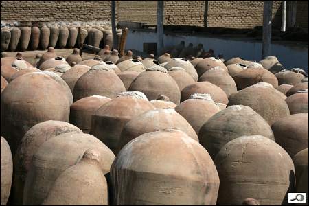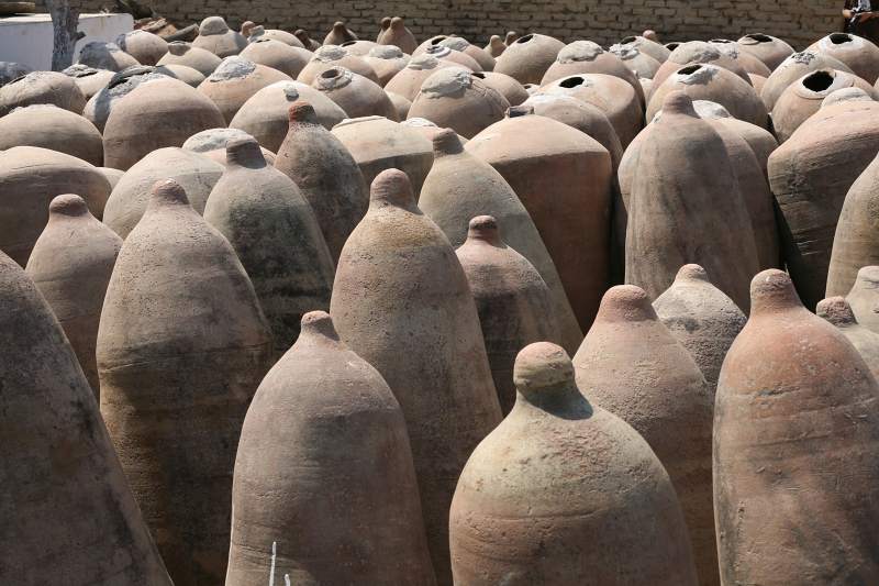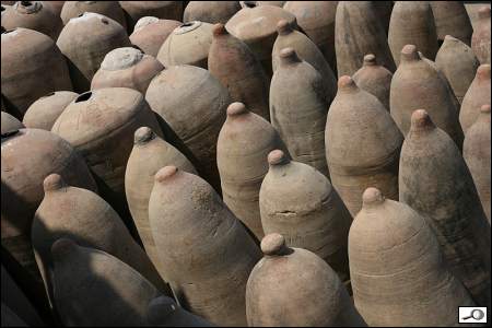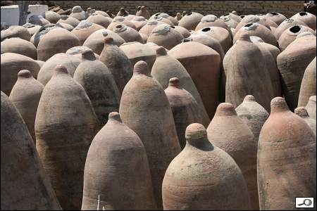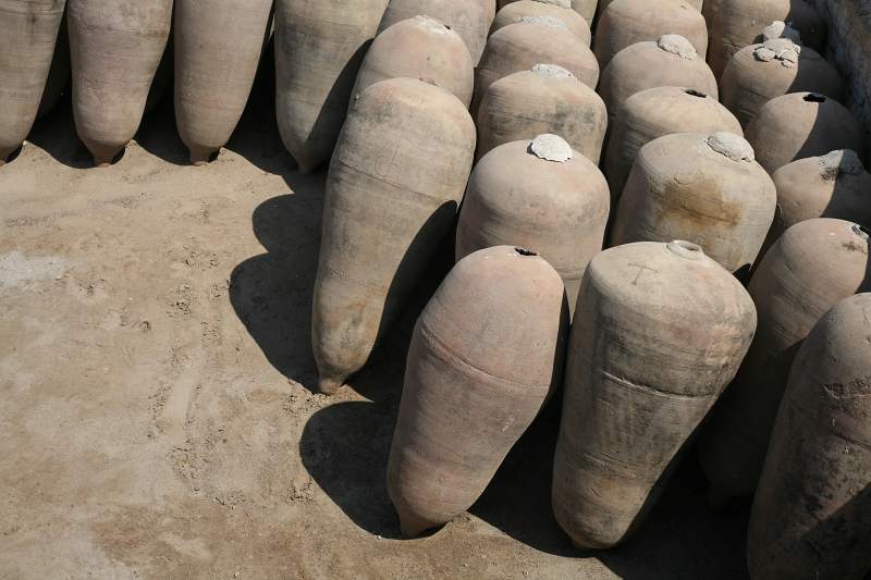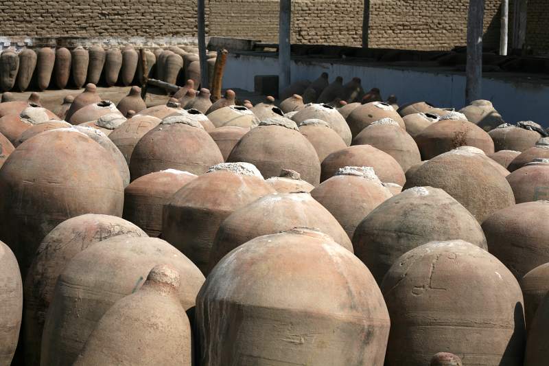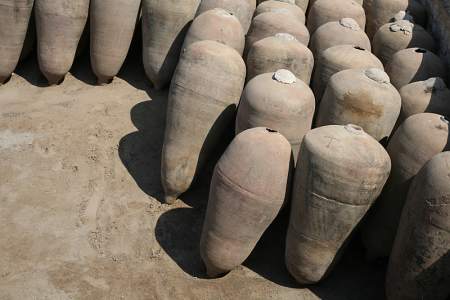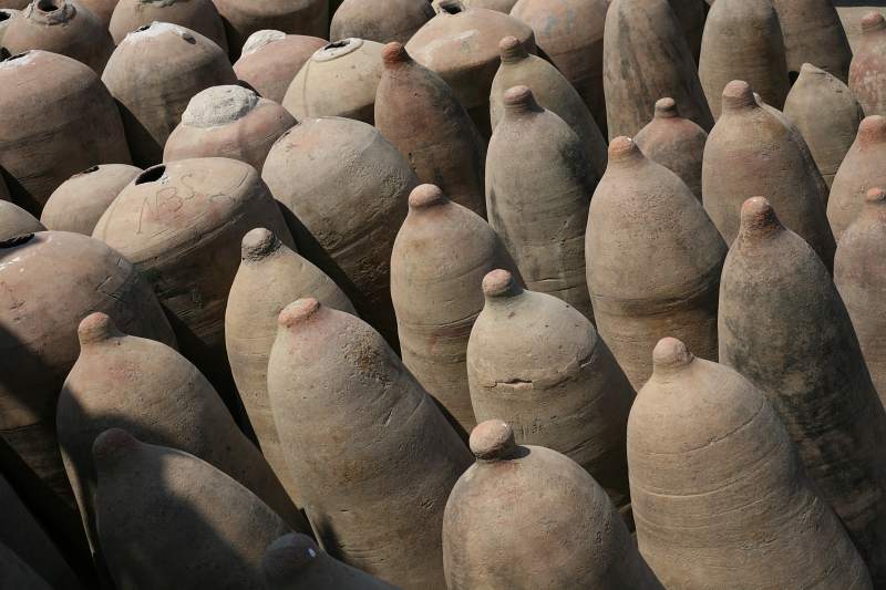 V palírně stáčejí výsledek do keramických nádob. Jsou podobné antickým amforám. Je tohle dobrá cesta k fotce? Vypadá to nějak takto: