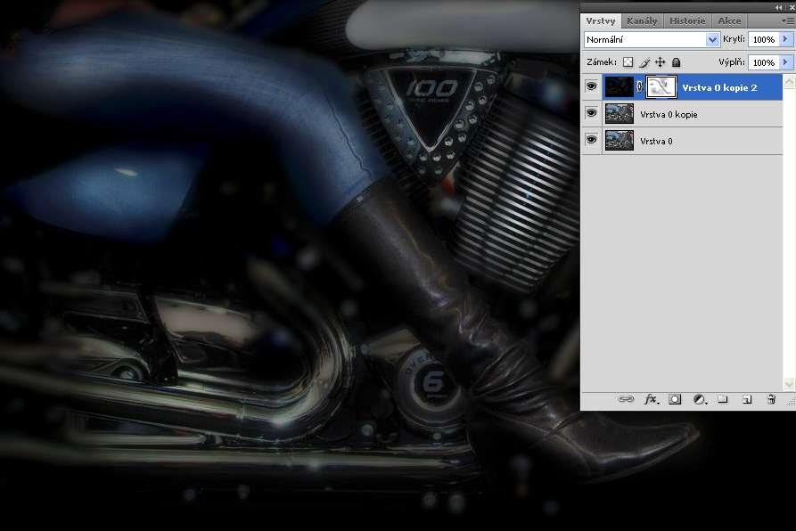 No a tak pracujeme, dokud se nám obrázek nebude líbit, můžeme to dělat tak dlouho, jak je libo. U výsledného obrázku jsem na pochybách stran toho červeného a modrého motivu vpravo – lze to snadno odstranit, ale když jsem to zkusil, stýskalo se mi po tom, takže jsem to nechal tak, jak to vidíte a jak to viděl Ondřej Hendrych na výstavě motocyklů.