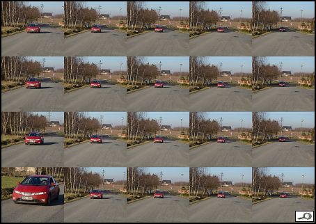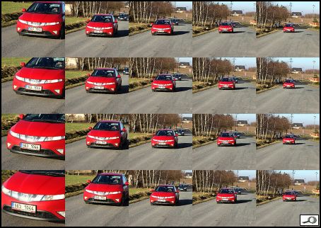 Jak uostří jedoucí auto? To nás jistě bude zajímat, fotíme automobilové závody a jiné podobné piškuntálie. Má rodná žena Ljuba Krbová se posadila za volant. Nastavil jsem průběžné (kontinuální ) ostření, manuální expozici, zvolil režim jednoho ostřícího bodu a ten nastavil na střed a ohnisko nastavil na ekvivalent cca 100 mm. Ljuba projela kolem mě rychlostí 50 km/hod. Výsledky byly prakticky shodné, všechny tři fotoaparáty ustíhaly ostřit naprosto uspokojivě.