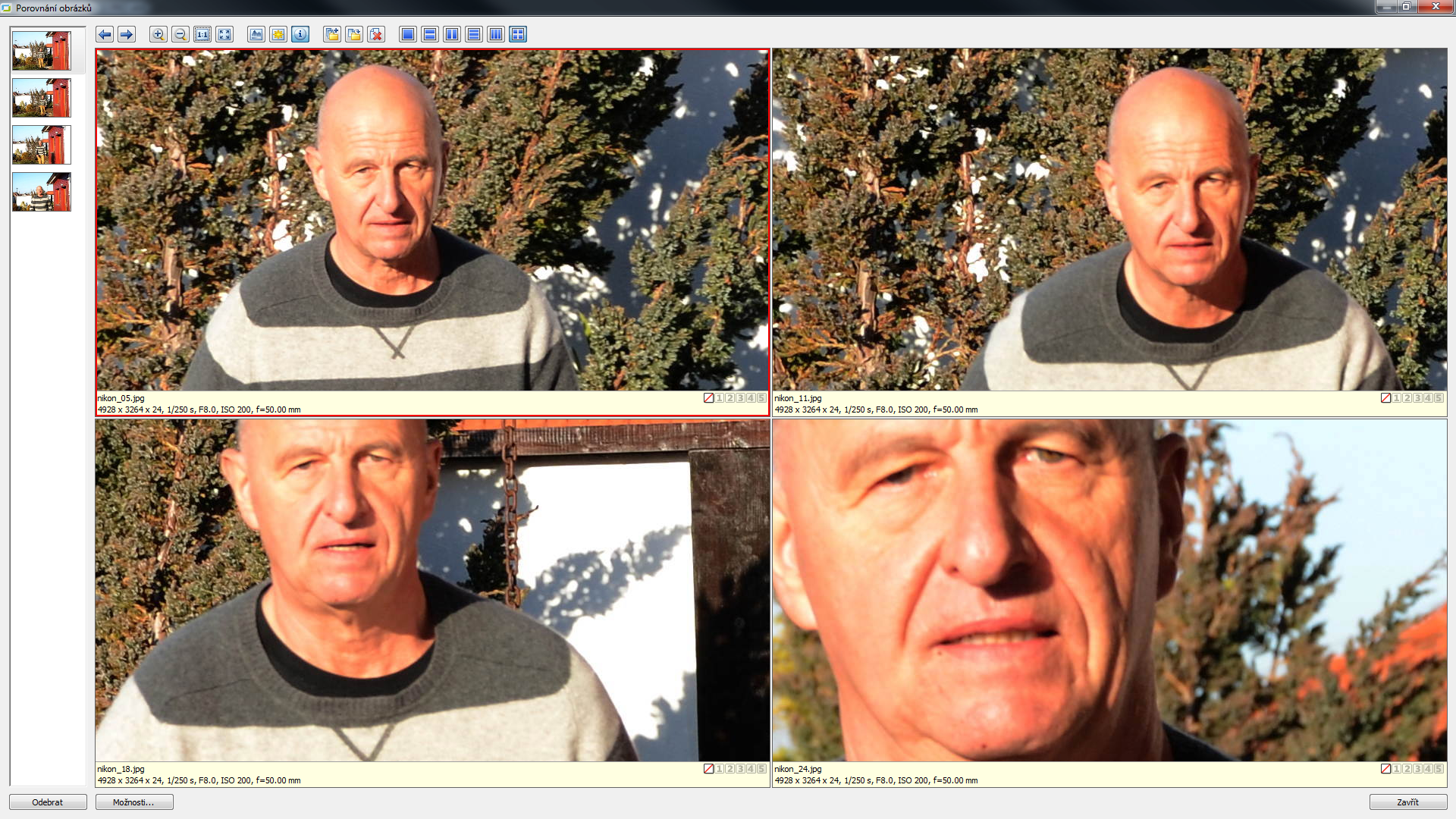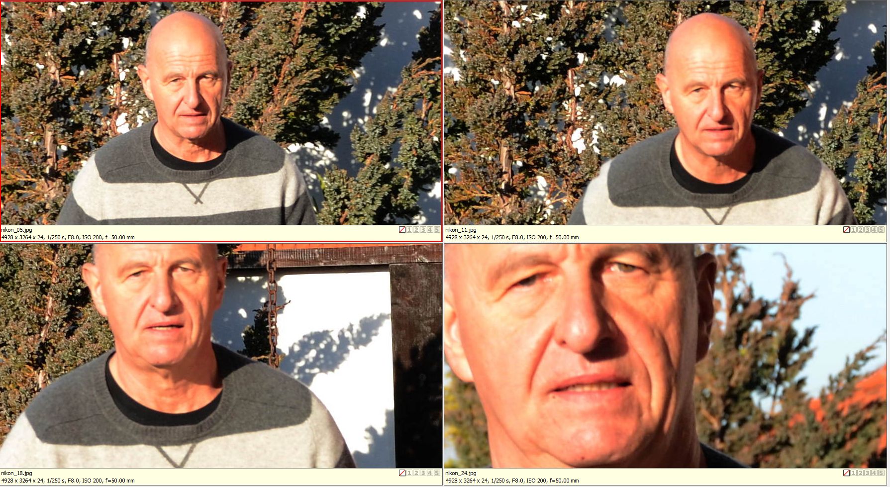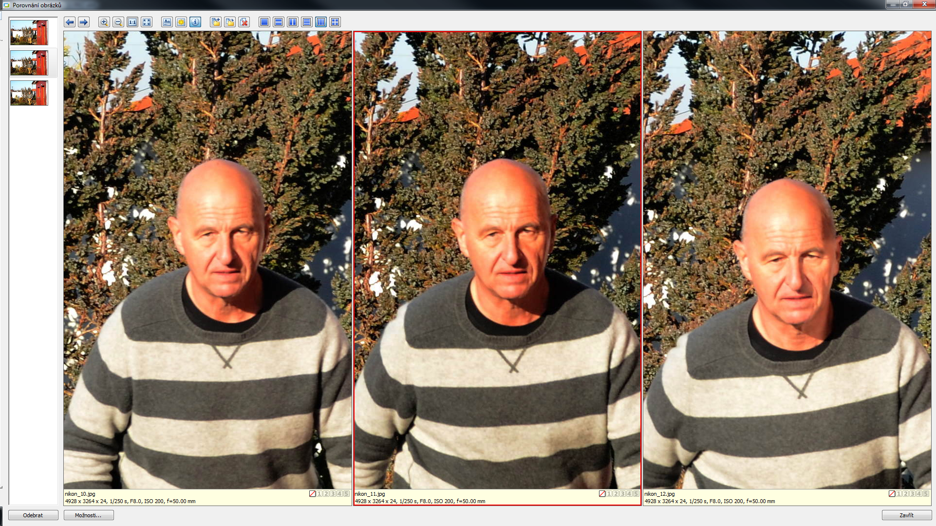 Potíže měl Nikon D7000. Zde je srovnání snímků pořízených zhruba ve stejných odstupech jako předešle: