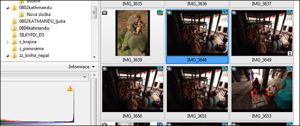 Tím jsme vyřadili první vlnu balastu a nesmírně se nám tím uvolnily ruce. Špatné svědomí mít nemusíme – “všechno” je v záloze na disku. Čemu jsou fotky určeny Jiná možnost – sestavení fotoknihy. Když zvážíme všechny náklady na cestu do nějaké exotické ciziny, pak mi cena v řádu 1500 Kč za fotoknihu nepřipadá neúnosná. Zato efekt je veliký. Na slušnou fotoknihu potřebujeme 100 – 150 fotek. A zase, máme kritérium. Pak se stane, že nám řeknou, přines do firmy fotky, máme setkání, dvacet minut nám povídej a ukazuj. No a zase je kritérium – do dvaceti minut se vejde, dejme tomu, 30 fotek. Shrnu: při výběru velmi pomůže konkrétní zadání, k čemu mají fotky sloužit. Technika převodu vybrané fotky. Mimochodem, pokud budeme fotky promítat, není třeba se trápis s velkými datovými objemy, pro projekci velmi dobře stačí fotky zmenšit na nějaké 2 Mpx, tedy typicky na formát 1600 x 1200, a pak fotky snadno přeneseme v datové klíčence. Ale to opravdu jen na okraj. Též doporučuji – na př. v Zoneru – možnost fotky seřadit a vypálit jako prezentaci včetně prohlížeče, takže na hostitelském PC nemusí být žádný obslužný software,m cše neseme na CD s sebou. Co s RAW Jakmile mám výběr hotov, individuálně zpracovávám fotky z RAW. Chápu, že bych je měl ukládat v TIFF, přiznám, že to dělám do JPEG, který je datově podstatně méně náročný. Fotky zpracované v konvertoru obvykle dodělávám v Photoshopu do finální podoby a ukládám vždy pod jménem z_nazev_0*.jpg: tedy z, aby se mi fotky uložili na konec složky, následuje název, podtržítko a pak pořadové číslo, obvykle o dvou pozicích. Takže třeba z_drepung_11.jpg. Tahle “zetka” nechávám v původních složkách a kopíruju je podle určení: přednáška, fotokniha, článek v časopisu a podobně. Takže v praxi to vypadá nějak takto. ![]() Technicky byla velmi složitá, za nízké světelné hladiny s velkým kontrastem – bylo třeba vygenerovat tři různé varianty lišící se světlostí. To už jsou snímky v JPG a jsou připraveny k dalšímu zpracování. Jsou přejmenované – z_katmandu23a až c: ![]() No a ty pak spojením ve vrstvách Photoshopu slouží jako podklad pro finální obrázek, zobrazující soukromou hinduistickou bohoslužbu na Durbar Square v Katmandu: ![]() |