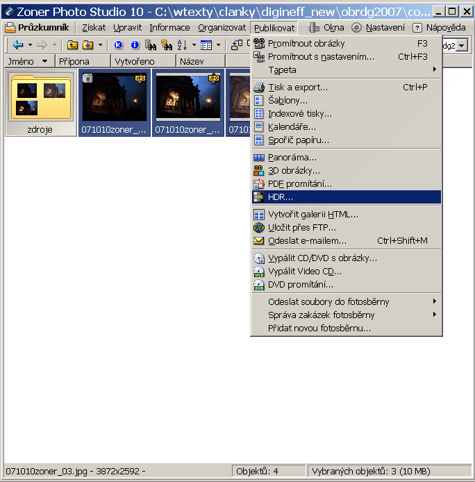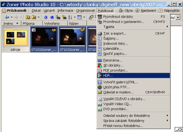 Jakmile máme připravený materiál, otevřeme HDR dialog v Zoner Photo Studiu 10.
