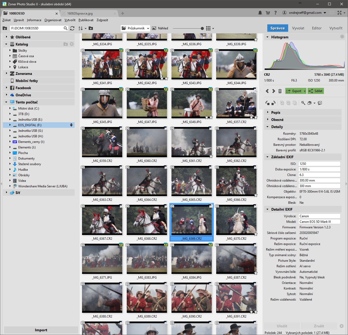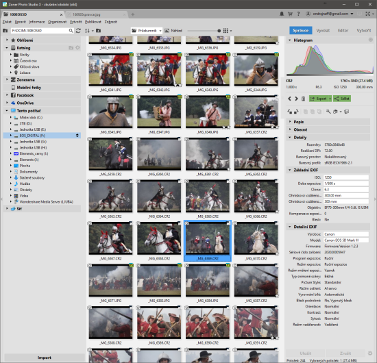 Nové je v podstatě všechno. Je to jistě největší změna od roku 2004, když Zoner předvedl poprvé Photo Studio – před tím se produkt jmenoval Media Explorer. Jistě není náhoda, že včerejší datum uvedené ZPS X bylo také 19. září jako před dvanácti lety – pro nostalgii se můžete podívat na moji tehdejší informaci na Digineffu. Pokud jde o rozhraní, ty zásadní změny máme za sebou od verze ZPS15, kdy se produkt postupně vyvíjel, takže kdo pracoval se ZPS17 nebo ZPS18 si rychle na novinky zvykne. Takto vypadá Správce, tedy ta část ZPS, kde organizujeme svůj archiv.