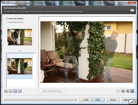 Je jasné, že na Wericha si nebudete chtít hrát moc často. Nicméně poměrně často chceme fotit nějaký statický objekt a vadí nám, že kolem něho chodí lidi nebo jezdí auta. Zkusme si tedy vytvořit z oné dvojice v ukázce nahoře výsledný obrázek bez lidské postavy. Zde má aplikace problémy, protože těžko určuje, co je pohyblivý objekt. Nicméně v praxi je to fotograficky jednodušší varianta, zkusme ji tedy.