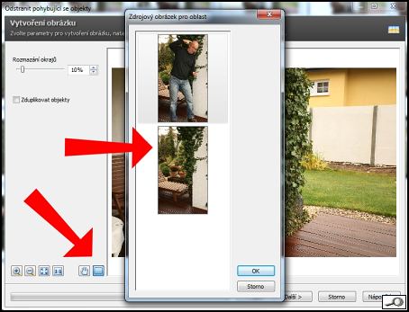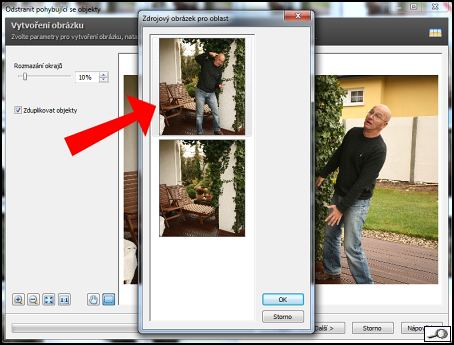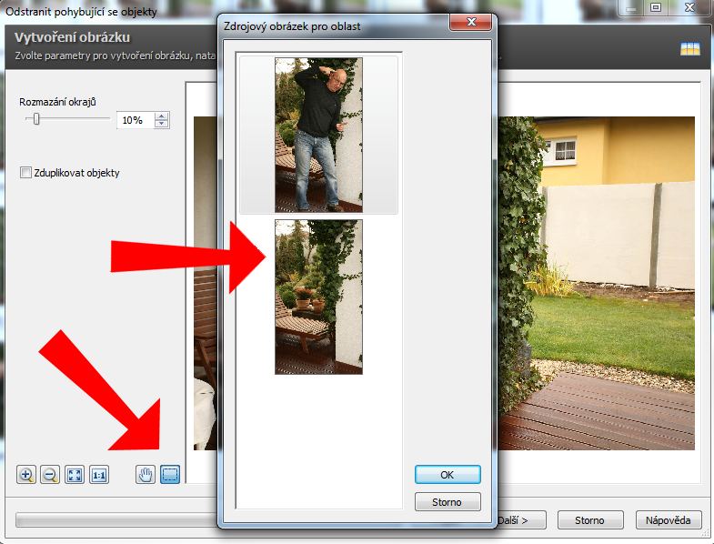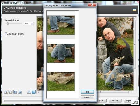 Není to tedy automatický proces, musíme mu pomoci. Klepneme na ikonku pravoúhlý výběr a vymezíme tímto výběrem figuru určenou k vymazání. Objeví se nabídka zdrojový obrázek pro oblast a v ní klepneme na prázdný obrázek (bez figury)