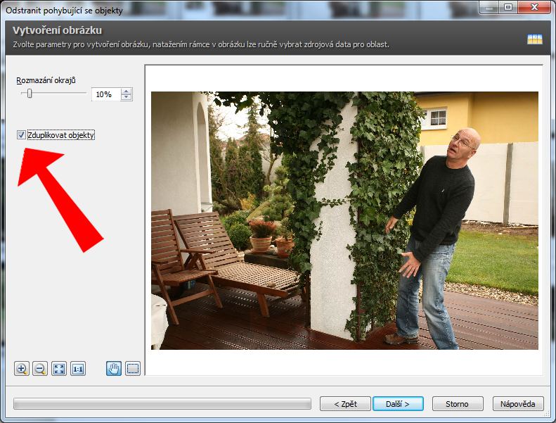 Proces je totožný s tím, jak je to popsáno výše, až do karty Vytvoření obrázku, kde zatrhneme volbu zduplikovat objekty:
