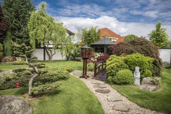 Na obrázku nahoře je naše zahrada ohniskem 24 mm na full frame, spodní obrázek je pořízen 3x delším ohniskem, tedy 70 mm.