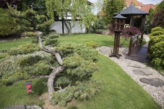 Myslím, že dobré vodítko mi poskytl nedávno můj posluchač, svým osobním zaměřením exaktně uvažující, když věci chtěl přijít na kloub a nakonec to vyjádřil nějak takto: jde o poměr velikosti popředí vůči pozadí. Srovnejme opět 24 mm a 70 mm, ovšem po změně stanoviště. Fotil jsem tak, aby borovice v popředí zaujímala více méně stejnou výšku a porovnejme ji s altánkem.
